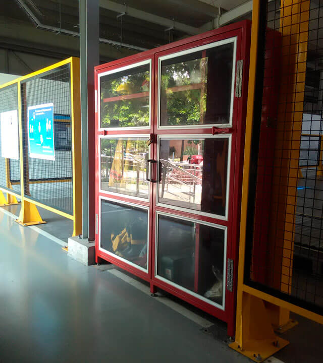 Fabricamos e instalamos guardas de seguridad bajo estándares de seguridad de la empresa, que facilitan el acceso de personal en áreas con riesgo de caída de mercancía almacenada y restringen el ingreso a zonas peligrosas.