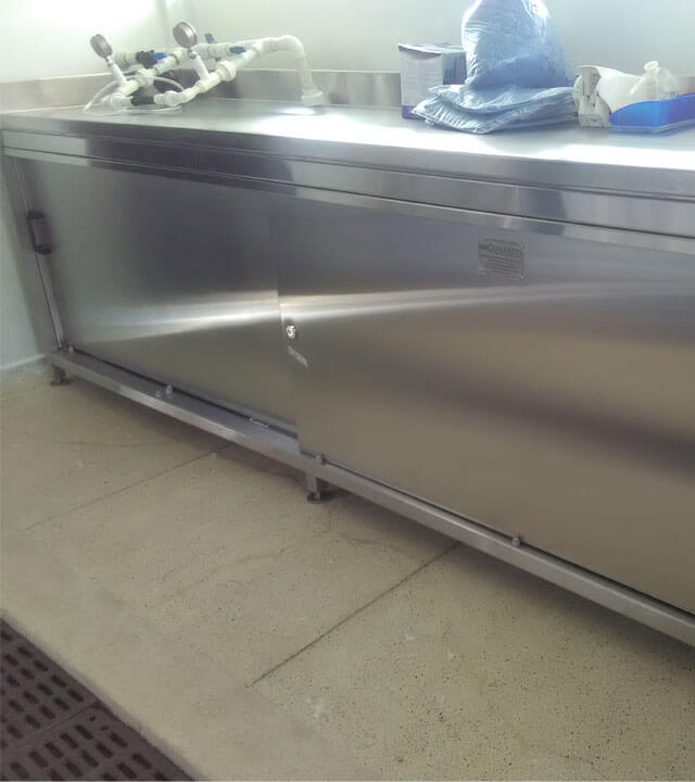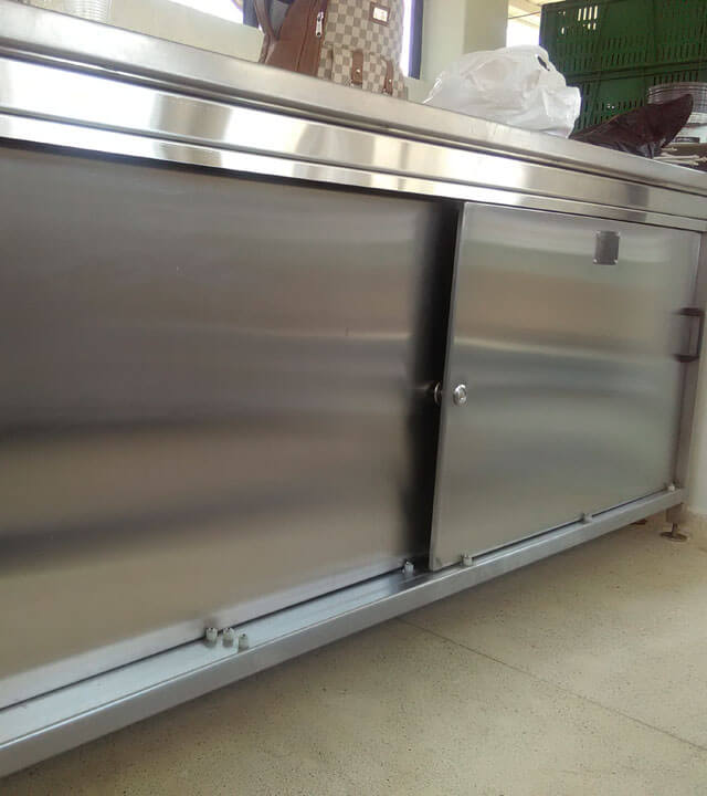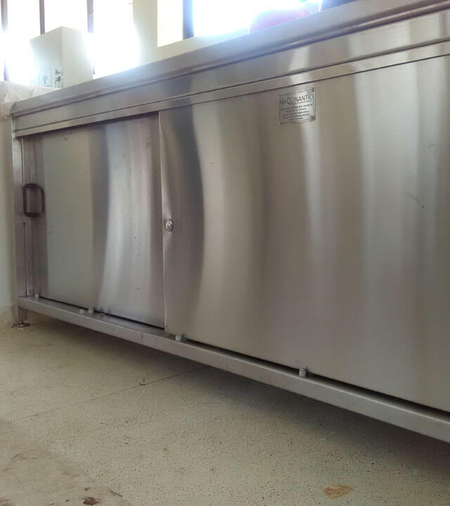 Fabricamos según las especificaciones del cliente, con PTS y lámina inoxidable según la norma. Drenajes internos, grifo extensible, patas niveladoras y manijas industriales en aluminio anodizado.